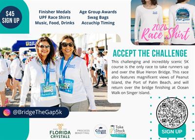 Join us on Saturday, February 28, 2026 for a beautiful 5K run beginning at Ocean Walk Singer Island and across the 65 feet high Blue Heron Bridge.