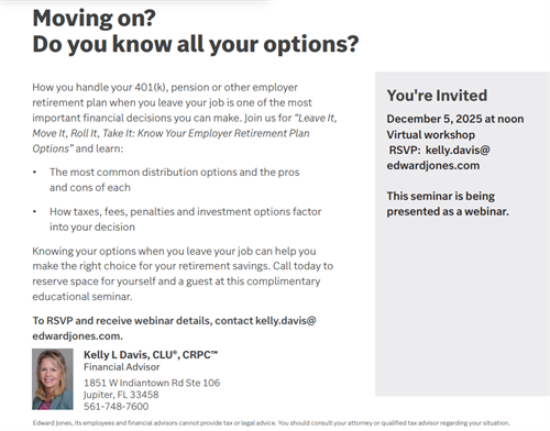 Not Found [CFN #0005] Request Headers: --> Leave it, Move it, Roll it, Take it - an Educational webinar on 401k Rollovers - Apr 3, 2026
